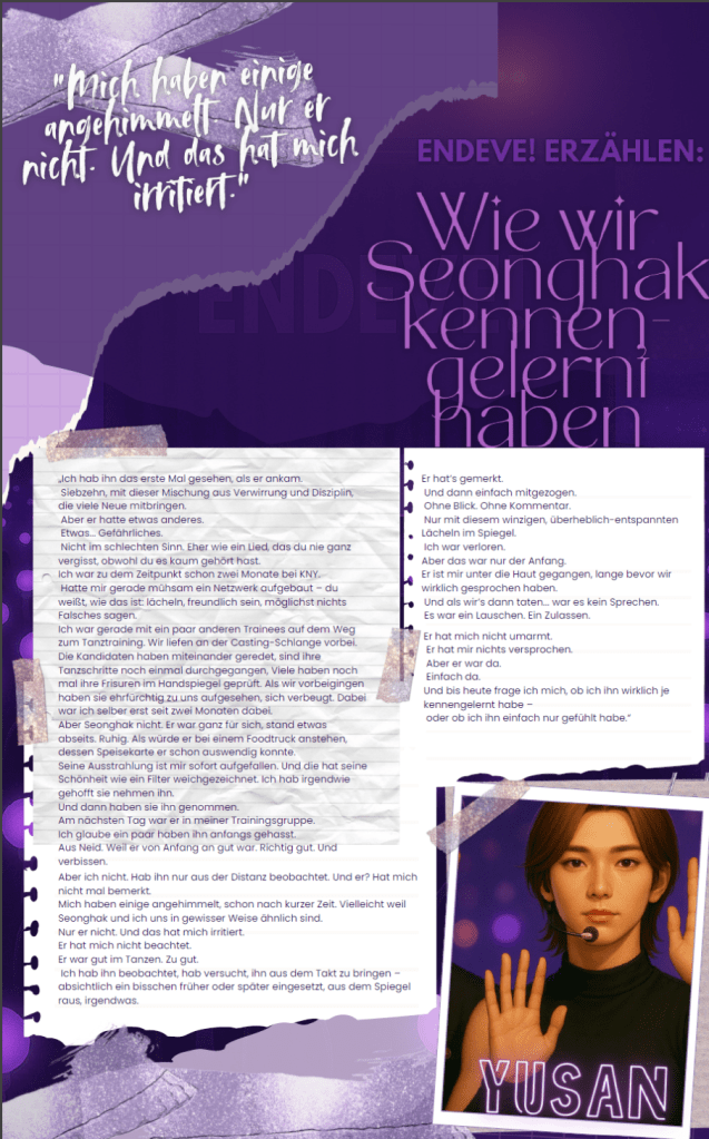 Er gehört zu Endeve! – eine der beliebtesten K-Pop-Gruppen des Landes. Umgeben von Blitzlicht, Fans und Erwartungen. Im echten Leben zieht er sich zurück. Online erzählt er ihr alles.