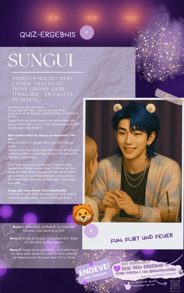 Melde dich für meinen Newsletter an und sichere dir das kostenlose Fanzine zu Falling For Them – mit exklusiven Szenen, Fan-Quiz, Steckbriefen und mehr. ✨ Nur für Endevys – direkt in dein Postfach.