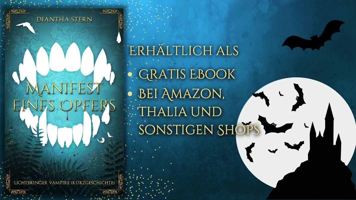 Lichtbringer Vampire: Manifest eines Opfers ist am 25. Juli 2016 erschienen. Zuvor gab es die Kurzgeschichte bereits auf meinem Blog zum Download für die Fledermauspost-Abonnenten. Mittlerweile ist sie in allen gängen Bücher-Onlineshops als kostenloses eBook erhältlich.